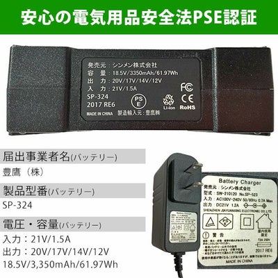 | 入出力(バッテリー):入力:21V/1.5A 出力:20V/17V/14V/12V |