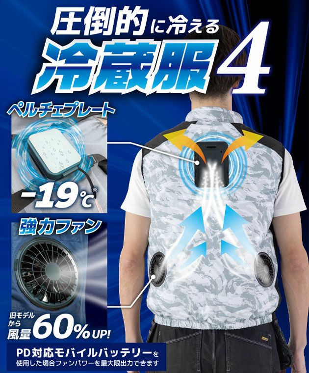 | 【特徴】 | 届いたらすぐ使える!冷蔵庫と同じ仕組み!「冷蔵服4」誕生! 冷却ペルチェとファン付き空調作業服を一つに! ばっちり冷える理想の1着バッテリー付きで登場! ◆最大-19℃!大型ペルチェプレート採用! ◆ペルチェの排気は背中から外に排出するから効率よく衣服内を冷やせます! ◆ペルチェプレートが体に密着しやすいフィットシステム搭載 ◆ファンの風量は冷蔵服3に比べて60%アップ! ◆PD(パワーデリバリー)対応バッテリー仕様で風量アップします! ◆抜群の遮熱性能!裏面は全面チタンコーティングだから外からの熱や紫外線をカット! ◆簡単に部品を取り外せるからネットに入れて洗濯が可能! ◆バッテリーポケット ◆脇ポケット・ケーブルホール ◆袖周りストレッチバインダー ◆左胸ファスナーポケット ◆モード ・ファン:強モード/弱モード ・ペルチェ:ON/OFF ◆ファンの風量 ・PD対応モバイルバッテリー使用時:強モード80L/秒・弱モード33L/秒 (ペルチェON・OFF時共通) ◆稼働時間 ・強:約3時間半/弱:約8時間 ・ペルチェのみ:約9時間半/ファンのみ:7時間 ◆ペルチェプレート温度 ・ファン強での動作時:環境温度より-10~-15℃ ・ファン弱での動作時:環境温度より-5~-10℃ ・ペルチェのみ:環境温度より-15~-19℃ ◆バッテリー ・PD対応だからハイパワー! ・バッテリー容量:3.7V/20,000mAh(74Wh) ・寸法:縦142×横70×高さ39mm ・重量:422g ・入力ポート:USB-C…5V/3A、9V/2A、12V/1.5A 18W(MAX) ・出力ポート:USB-C…5V/3A、9V/2.22A、12V/1.67A 20W(MAX) ・出力ポート:USB-A…5V/3A、9V/2A、12V/1.5A 18W(MAX) ・充電時間:約7時間(9V2A急速充電時)/約10時間(5V/2A通常時) ・セット内容:バッテリー×1、説明書×1、USBケーブル×1(ACアダプター別売) ◆バッテリーは安心のPSEマーク取得製品! 届出事業者名(バッテリー):サンコー株式会社 製品型番(バッテリー):TKMB25HBK PSマークの種類(バッテリー):PSE |