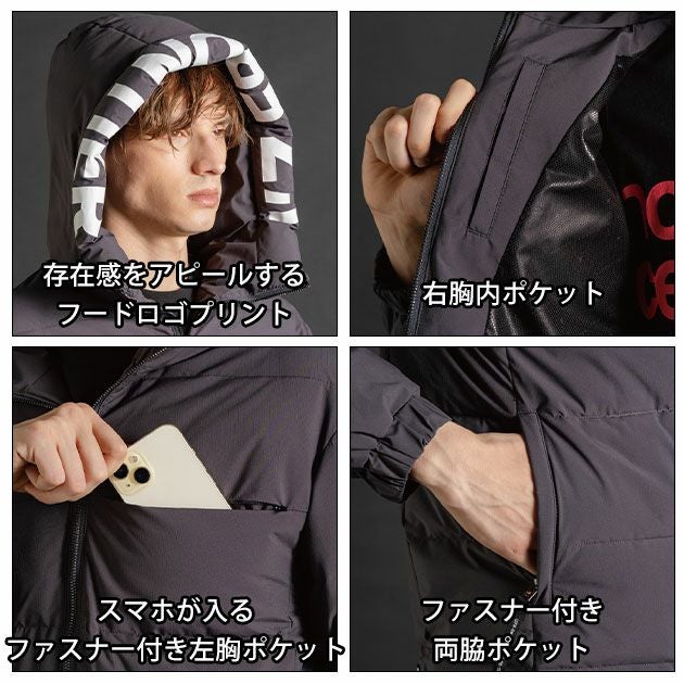 | 【特徴】 | 夢幻のような温もりと高級感あふれるルックス。 比類なきラグジュアリーな世界の新たなる物語が今、始まる。 ◆ラグジュアリー感を遺憾なく表現した極上のウインターウェアハイスペックモデルにシンプルリッチなパーカーモデル登場。 ◆表生地はリッチさと耐久性を兼ね備えたストレッチドビークロスを採用。ポリエステルに無い耐久性を実現。 ◆適度な全方位ストレッチ性を実現し、ストレスの少ない動きやすさを実現。 ◆裏生地には体の熱を効果的に反射し保温性を高めるブラックアルミニウムリフレクトプリントを施した。 ◆中綿にはポリエステルファイバーダウンを採用。絶妙なボリューム感と軽量化を両立し、高い保温効果を発揮。 ◆さらに素材裏側のTPUラミネーション加工で高い防風性も実現。冷たい風をシャットアウト。 ◆袖、裾には耐久性の高いストレッチリブを使用。あらゆる動きにフィットし風の侵入を軽減。 ◆フード部分には大胆な大型ラバープリントが圧倒的な存在感を発揮。ラグジュアリーテイストあふれるルックスであらゆるシーンをリッチに演出。 ◆右胸内ポケット。 ◆スマホが入るファスナー付き左胸ポケット。 ◆ファスナー付き両脇ポケット。 |