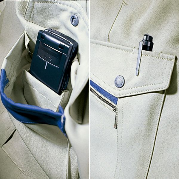 | 素材 | : | 高密度ポリエステルソフトツイル、ソフト加工、撥水加工、ストレッチ、製電 |