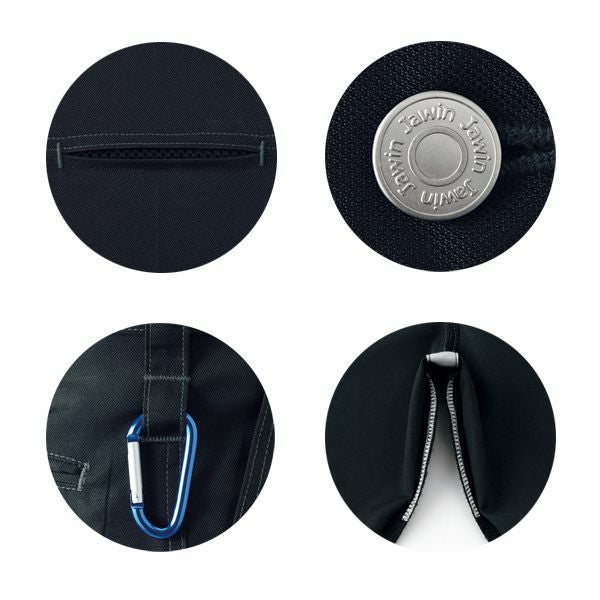 1、タックボタン 2、消臭&抗菌テープ 3、パンツ裾紐通し穴 4、カラビナループ 5、Jawinロゴ刺繍 6、膝裏ベンチレーション(メッシュ) 7、帯電防止素材使用 8、消臭&抗菌効果 |