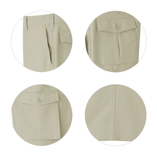 1、右側親子ポケット仕様・後、両タタキポケット仕様 2、帯電防止素材使用 3、ストレッチ |