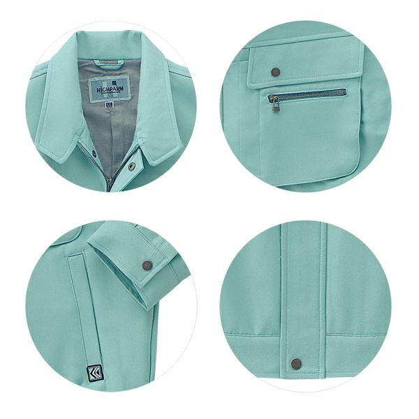 1、背当千鳥格子柄 2、右胸携帯ポケット 3、左胸Wポケット&ペン差し 4、左袖ペン差しポケット 5、制電素材 6、裏綿素材 |