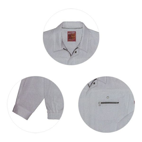 1、制電 2、丈夫 3、ソフト加工 4、プラス特大サイズ 5、イージーアイロン 6、右胸ポケット内携帯ホルダー 7、便利な左腕ペン差しポケット 8、肘プリーツ 9、しっかり収納左身頃内ポケット 10、内ポケット 11、携帯電話ポケット |