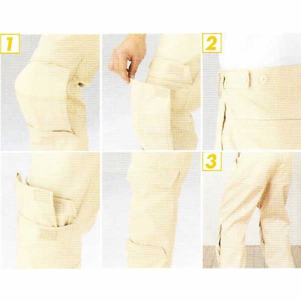 1、膝パッド付、膝ポケットフラップ/マジックテープ 2、フロントファスナー/アルミ(スライダー:金属) 3、脱着式膝パッド付 4、フロント、腰部脇/糸付プラスチックボタン 5、クラボウドクタームービンカット採用 6、強力三重環縫 7、帯電防止織物使用 8、ツッパリ感をおさえた快適ワークパンツ 9、引きつり軽減 10、サイズ豊富 11、腰部負担軽減 |