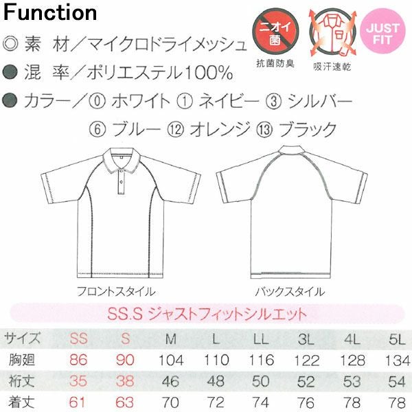 | 品番 | 【作業服】半袖ポロシャツ(ポケット無) AS-1647 |