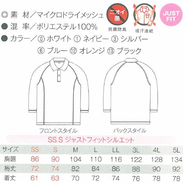 品番【作業服】長袖ポロシャツ(ポケット無) AS-1648