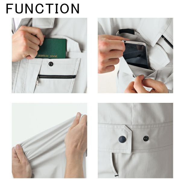 | 特徴 | 1、携帯電話収納ポケット 2、野帳用ポケット 3、ストレッチ 4、帯電防止素材使用 |
