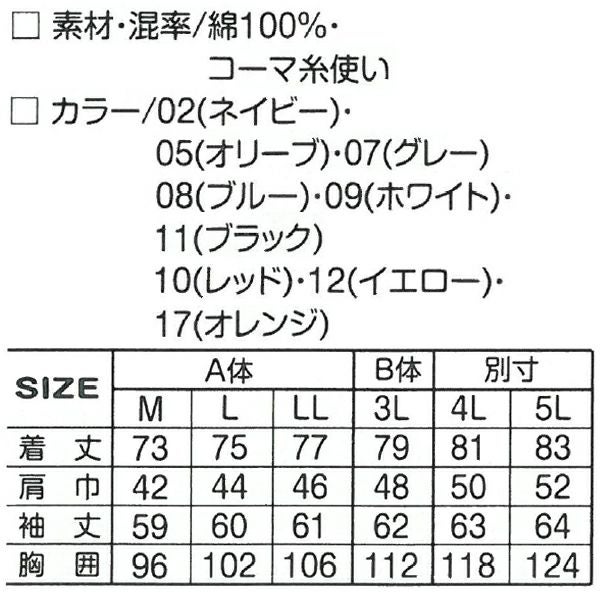 | カラー | ネイビー/02・オリーブ/05・グレー/07・ブルー/08・ホワイト/09・レット/10・ブラック/11・イエロー/12・オレンジ/17 |
