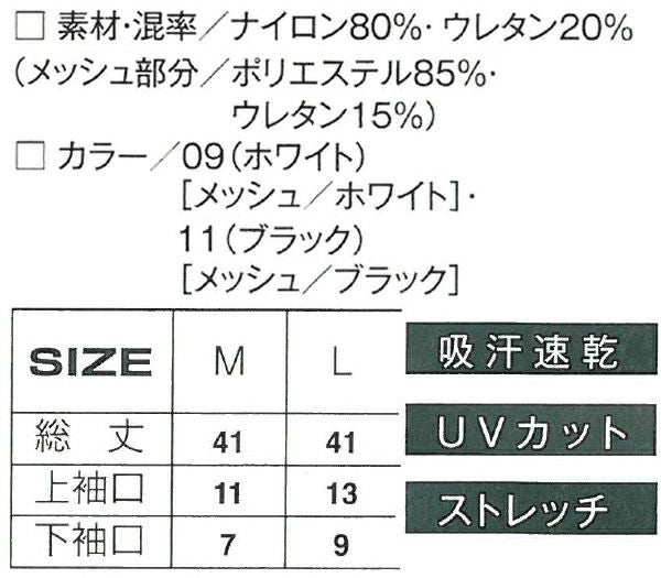 | 特徴 | 1、接触冷感 2、ストレッチ 3、UVカット 4、吸汗速乾 |