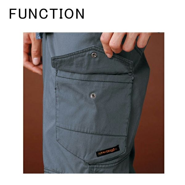 | 特徴 | 1、ヒザプリーツ 2、カーゴ隠しホックポケット 3、ノータック |