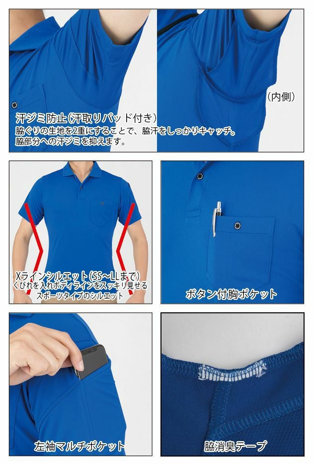 | 特徴 | 業界最軽量!従来比30%ダウンの軽さ! 未だかつてない軽さをとことん追求! 肌触りも柔らかく、タイトすぎずゆるすぎず、安心して着られるシルエット! ◆汗ジミ防止の汗取りパッド付き 脇ぐりの生地を2重にすることで脇汗をしっかりキャッチ! 脇部分への汗ジミを軽減します。 ◆ボタン付き胸ポケット ◆左袖マルチポケット ◆SS~LLまではスマートなシルエット「Xラインシルエット」採用 ◆UVカット ◆吸汗速乾 ◆脇消臭テープ付き ◆SS・Sサイズはレディースシルエット |