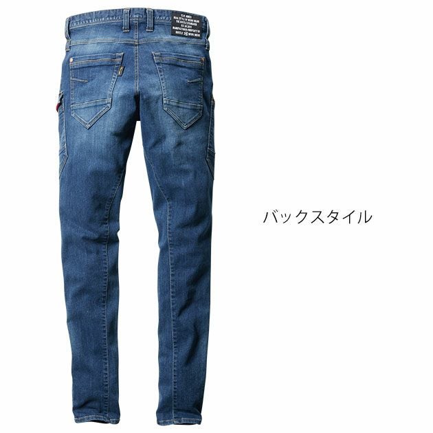 | 素材 | インディゴ:コーデュラCOOLストレッチデニム7.5oz(伸長率27%)、製品洗い、ブラスト加工 インディゴ以外:コーデュラCOOLストレッチデニム6.0oz(伸長率35%)、製品洗い加工 |