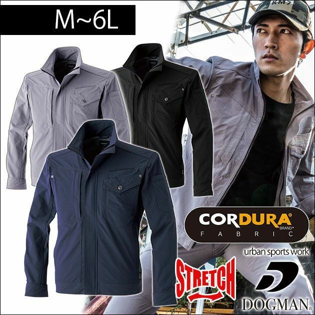 優れたコーデュラの高強度、高耐久が現場にうってつけ! 6L 中国産業 作業着 春夏作業服 DOGMAN コーデュラ2WAYストレッチ長袖ブルゾン 8308