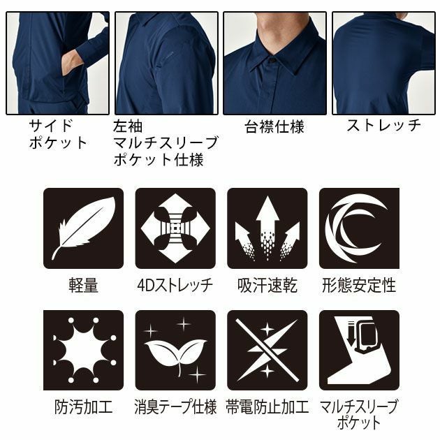 5L~6L TSDESIGN 藤和 作業着 秋冬作業服 TS 4Dステルスロングスリーブシャツ 9205