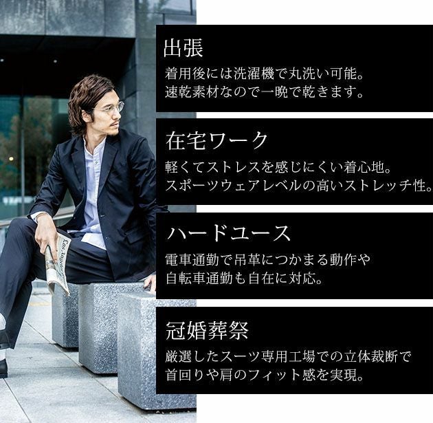 | 特徴 | スタイリッシュなデザイン! スーツ専用工場で立体裁断をおこない、首回りや肩のフィット感を出しました。 カジュアルからビジネス、フォーマルなシーンまで幅広く着こなせるパンツが登場しました! ◆作業服メーカーだからこそできた抜群の動きやすさ! 出張から在宅ワーク、自転車通勤までアクティブに動けるストレッチ素材を採用! 作業服メーカーだからこそ実現できたパンツなのです。 ◆ウエストシャーリング ◆ボタン留めピスポケット ◆裾上げテープ付き ◆ファスナー付きモバイルポケット ◆洗濯機で丸洗いできるストレッチ素材 |