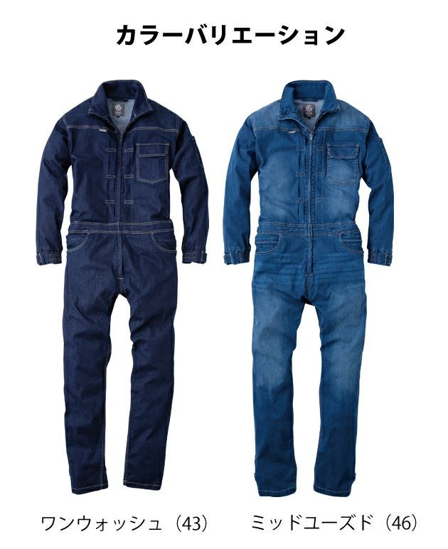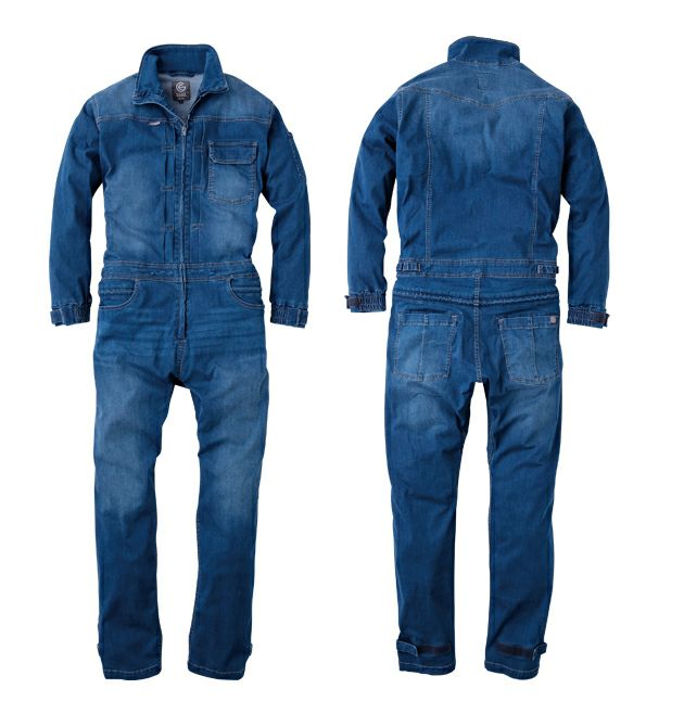 見慣れた定番のデニムツナギですが、着ると違いがわかる超絶ストレッチに加えて軽やかさもあり、ツナギの概念を覆す着心地。