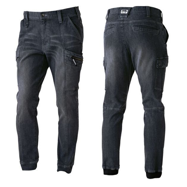 色をギリギリまで落としたハード加工と色を残した加工の2色展開 5L 寅壱 秋冬作業服 作業着 デニムカーゴジョガーパンツ 8870-235