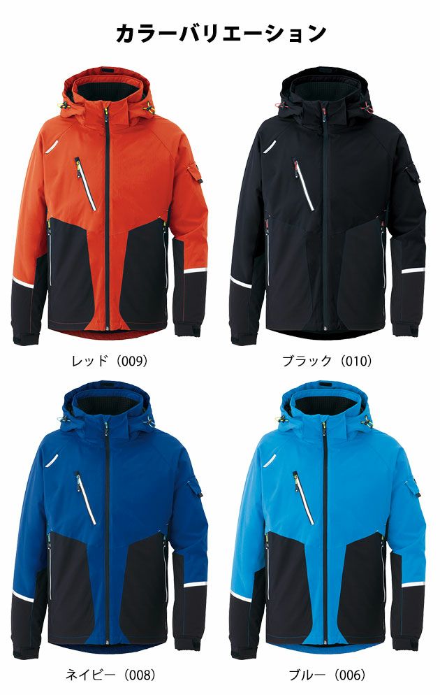 | 【素材】 | 表地:ポリエステルPUストレッチ(裏PUラミネート) 中綿:光電子(R)繊維混(身頃) 他:普通綿 裏地:起毛トリコット(身頃) 他:タフタ 加工/撥水 |