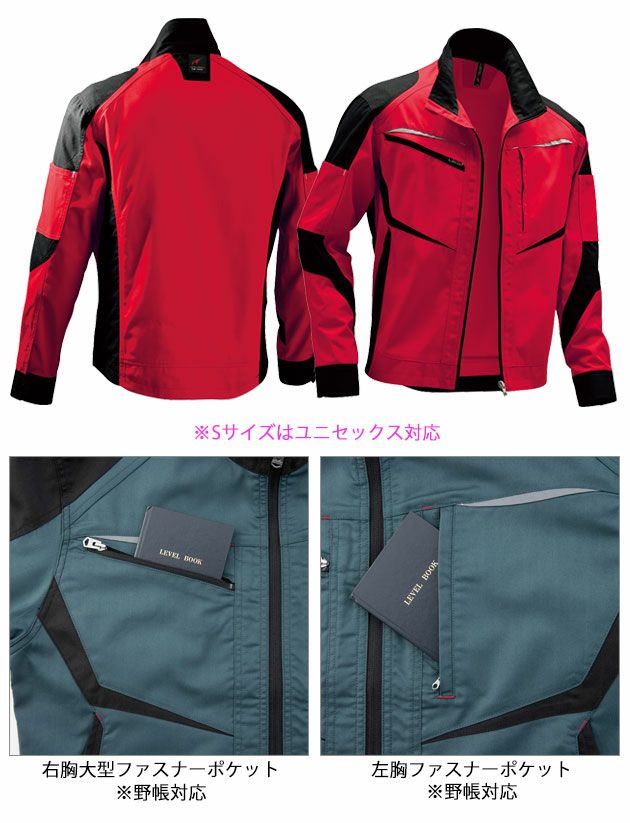| 【特徴】 | 耐久性のあるストレッチ素材、バイカラーとリフレクターを備えたEBAユーロスタイルモデル ・右胸大型ファスナーポケット※野帳対応 ・左胸ファスナーポケット※野帳対応 ・両腕マルチポケット ・袖口Wドットボタン ・エコログ織ネーム |
