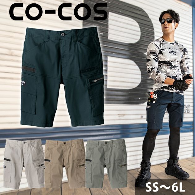 4L~6L CO-COS コーコス 春夏作業服 作業着 ストレッチマイクロヘリンボンショートカーゴ GA-3936