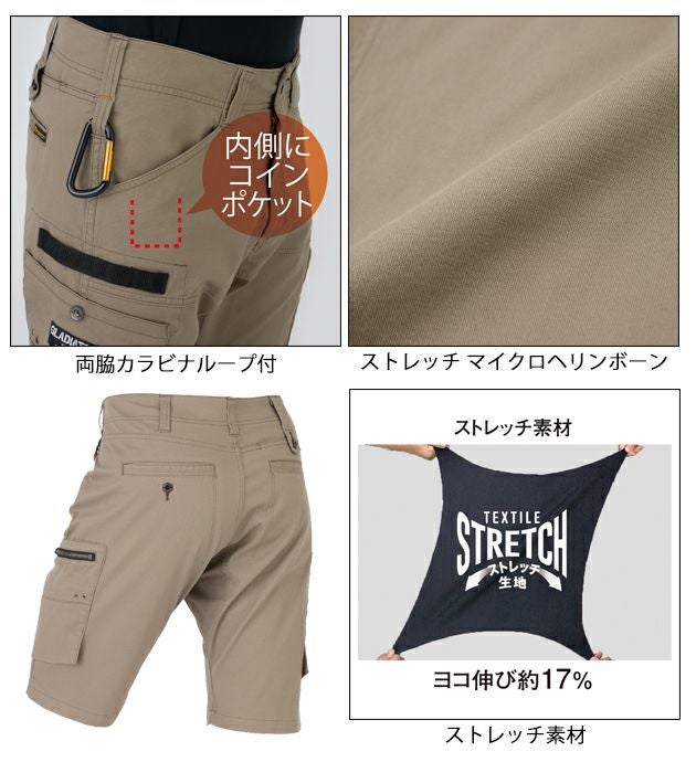 ユーロデザインテイストのストレッチ素材で動きやすいシリーズ 4L~6L CO-COS コーコス 春夏作業服 作業着 ストレッチマイクロヘリンボンショートカーゴ GA-3936