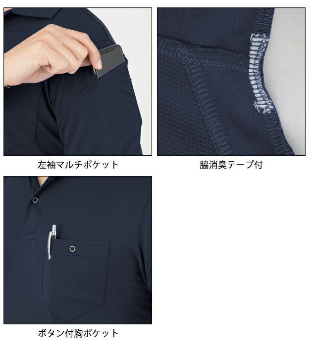 接触冷感・UVカット・吸汗速乾など夏を乗り切る多機能ポロシャツ 4L~6L CO-COS コーコス 春夏作業服 作業着 MAXDRY(R)ICE冷感長袖ポロシャツ G-1688