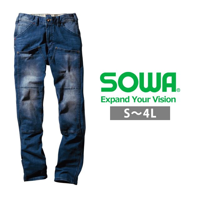 綿×PUキャンバスの動きやすさを追求した高いストレッチデニム 4L SOWA 桑和 秋冬作業服 作業着 カーゴパンツ(ノータック) 1472-18