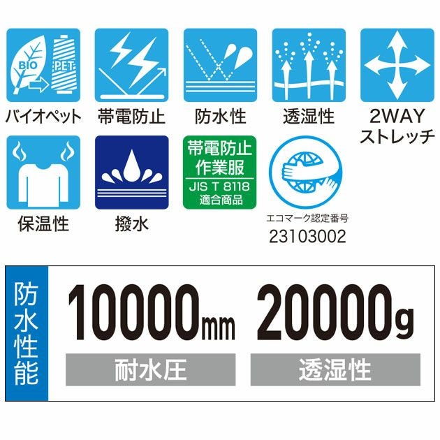◆耐水圧10,000mm・透湿度20,000gのハイスペック
