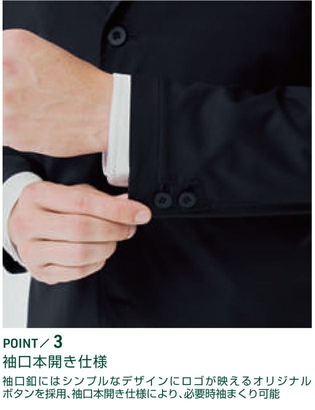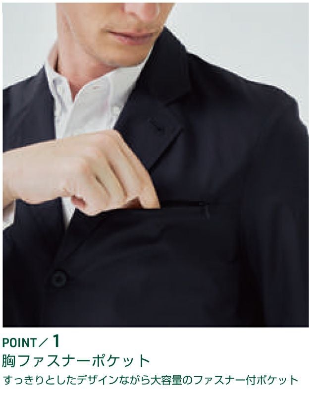 | 【特徴】 | 着心地の良い伸び感のあるテーラードタイプのジャケット。 適度な生地厚で長いシーズンで着用する事が可能。 小型タブレットにも対応する使い勝手のいいサイズの内ポケット、スッキリとしたデザインながら大容量の胸ファスナーポケット、大切な物の落下を防ぐ両脇のファスナー付ポケットと、機能性と着心地、高いデザイン性を兼ね備え、更にご家庭でも洗濯可能な新しいワークウェアです。 「作業現場でも活躍する、新しいワークスタイルユニフォーム」 1988年にスタートした「UniformCircusBEAMS」。幅広いお客様の要望にビームスならではのデザイン力と生産ノウハウで応えるユニフォームブランドです。 今シーズンより「桑和」のユニフォームラインナップに「UniformCircusBEAMS」のアイテムが加わります。 長い歴史と実績を持つユニフォーム製作の知見を活かし、機能性と着心地にこだわりながら、高いデザイン性を併せ持つ新しいユニフォームをご提案します。 ◆胸ファスナーポケット すっきりとしたデザインながら大容量のファスナー付ポケット ◆両脇ファスナーポケット 大切な物の落下を防ぐファスナー付ポケット ◆袖口本開き仕様 袖口にはシンプルなデザインにロゴが映えるオリジナルボタンを採用、袖口本開き仕様により、必要時袖まくり可能 ・背裏(ふらしタイプ) ・衿止め釦 ・ブランドネーム ・フラワーホール ・袖ペン差し ・胸ファスナーポケット ・両側内ポケット(8.3インチ程度のタブレットが入る) ・両脇ファスナーポケット ・袖口本開き仕様 ・内ペン差し ・センターベント |