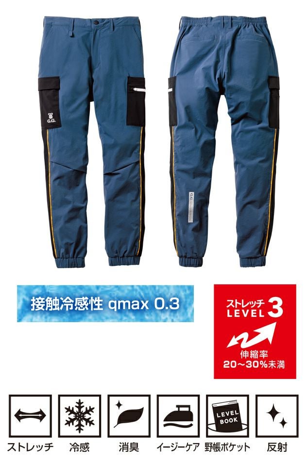 | 【特徴】 | 冷感!ストレッチ!ミニリップ! 夏を快適に乗り切る機能性G.G.セットアップ。 個性的な配色デザインで新登場! ◆ナイロン高混率による接触冷感性(qmax0.3) ◆反射プリントと配色パイピングテープによる視認性の良さ ◆軽くて丈夫なナイロンミニリップストップ ◆動きやすさを追求した縦横ストレッチ ◆不快な匂いを軽減するデオドラントテープ付き ・タック ・カーゴポケット ・カラビナループ ・スラッシュポケット ・カーゴファスナーポケット ・フラップ付きカーゴポケット(野帳が入る) ・反射プリント ・カーゴペン差し ・ロゴ入りパイピングテープ ・後ろウエストゴム仕様 ・両側片玉縁ポケット ・裾ゴム |