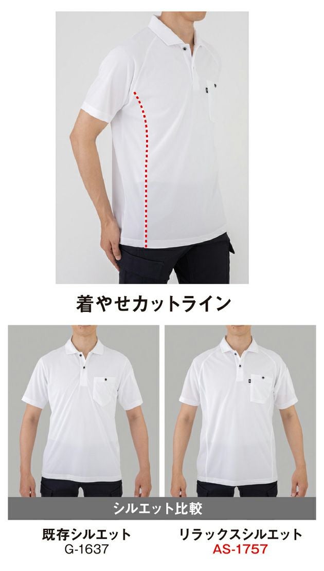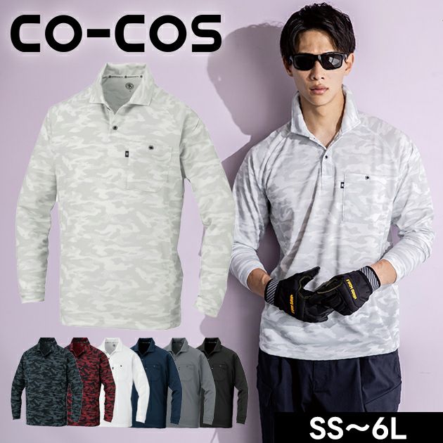 吸汗性・速乾性・肌離れに優れたバックメッシュ素材や消臭テープ 4L~6L CO-COS コーコス 春夏作業服 作業着 長袖ポロシャツ(リラックスフィット) AS-1758