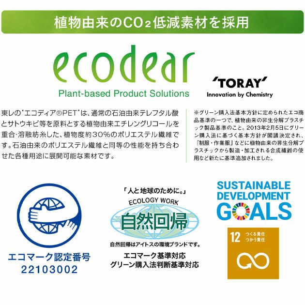 ◆エコな作業服!植物由来のCO2低減素材を採用!