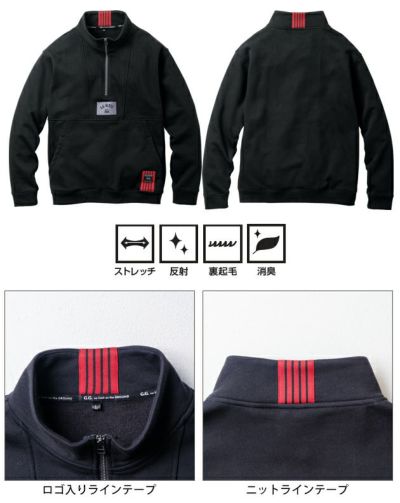 ゆったりシルエットとヘビーウェイトな裏起毛で安心の着心地 桑和 SOWA 1524-10 秋冬作業服 作業着 G.G. トレーナー(ハーフジップ) 4L