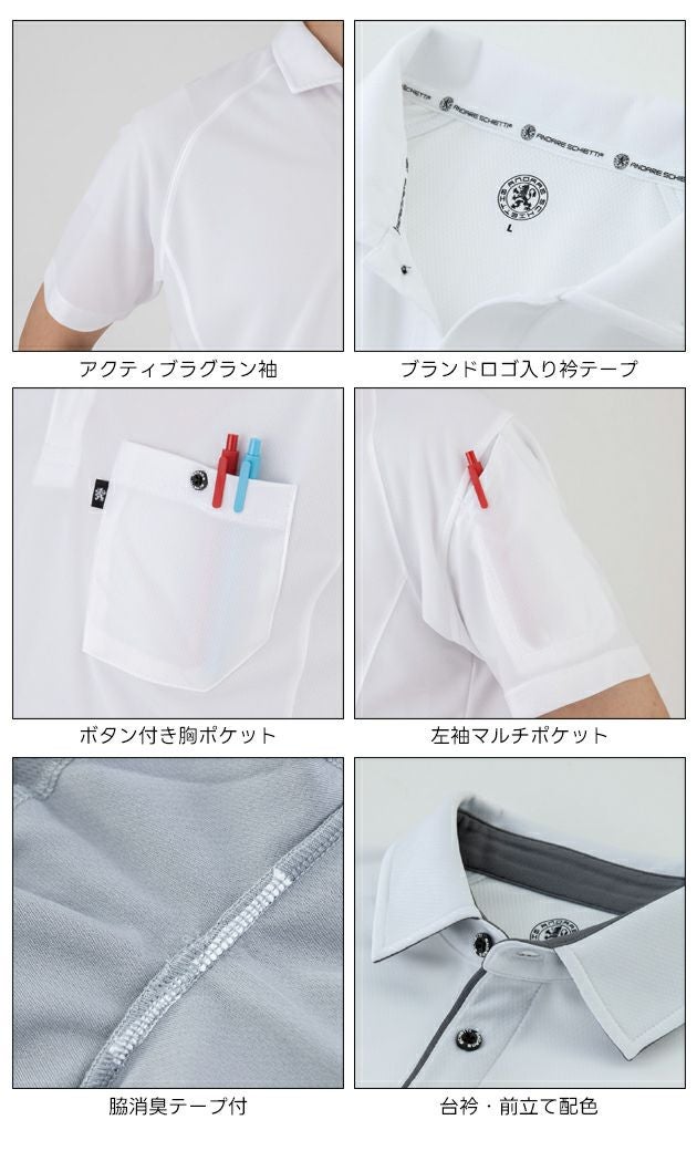 | 【特徴】 | ゆったりと快適に着用できるリラックスフィットに、ラフに着てもキマる前立て配色! フォーマル感がある台衿付きだからビジネスシーンにも対応可能。 ◆アクティブラグラン 肩周りの突っ張りを軽減し腕の上げ下げがしやすい仕様 ◆バックメッシュ素材 吸汗性・速乾性・肌離れに優れたバックメッシュ素材 ◆消臭テープ 両脇の消臭テープで不快な汗臭を軽減 ◆UVカット 紫外線遮蔽率98%のUVカット素材で日焼けから肌をガード ◆前立て配色 ラフに着てもキマる前立て配色のリラックスビズポロ(台衿付き) ◆リラックスフィット 身体のラインが分かりづらく、ゆったりと快適に着用できるシルエット ・ボタン付き胸ポケット ・左袖ペン差し ・着やせカットライン |
