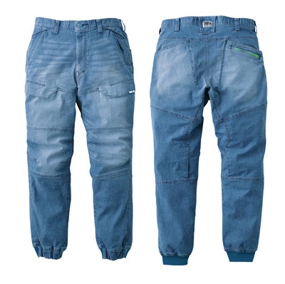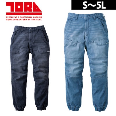 バイオブラスト加工によるビンテージ感のあるデニム生地を採用 寅壱 8923-235 春夏作業服 作業着 デニムカーゴジョガーパンツ 5L