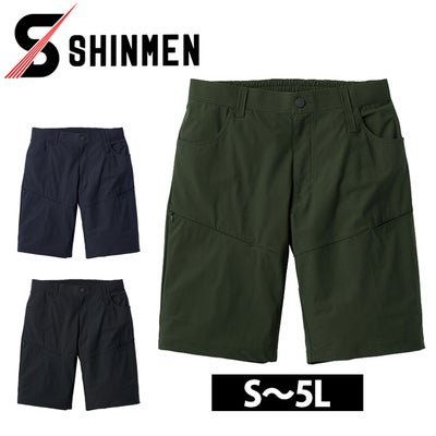 UVカット、接触冷感を備えた4WAYストレッチナイロントリコット シンメン 04643 春夏作業服 作業着 アイストリコットショートパンツ 5L