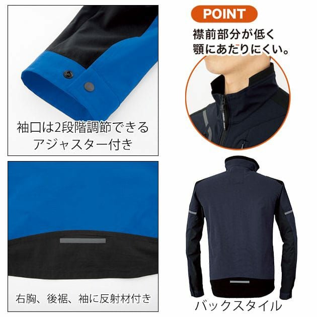 | 特徴 | ストレッチで動きやすい! しかもエコ素材採用で地球にやさしい作業服! ◆スタイリッシュなデザインでありながら快適なストレッチ性を実現! ◆植物由来のエコ素材「デュポンソロナファイバー」を採用! ◆静電気除去テープ採用で静電気の起きにくい仕様 ◆立体的なひじの設計でさらに動きやすい ◆両胸ファスナーポケット ◆左袖マルチポケット ◆袖口は2段階に調整できるアジャスター付き ◆右胸・後裾・袖に反射材付き |