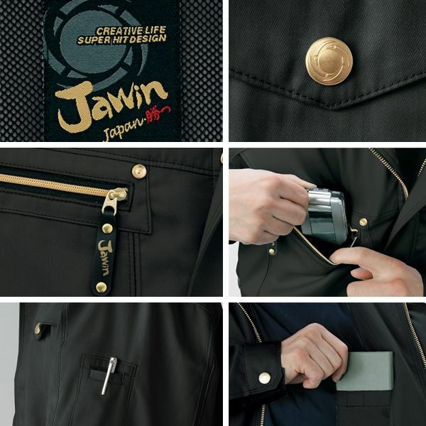 1、肩ネーム 2、両胸メッシュ 3、携帯電話収納ポケット 4、オリジナルスライダー 5、オリジナルデザインボタン 6、左袖ペン差し 7、クールメッシュ 8、ワンポイント 9、帯電防止素材使用 |