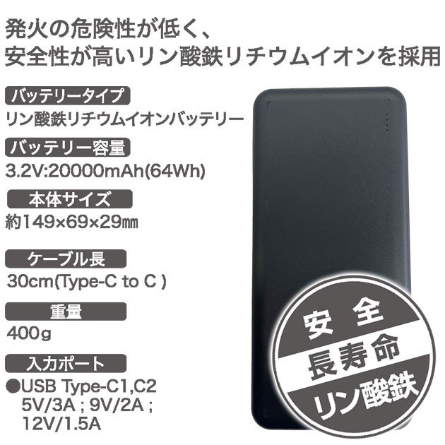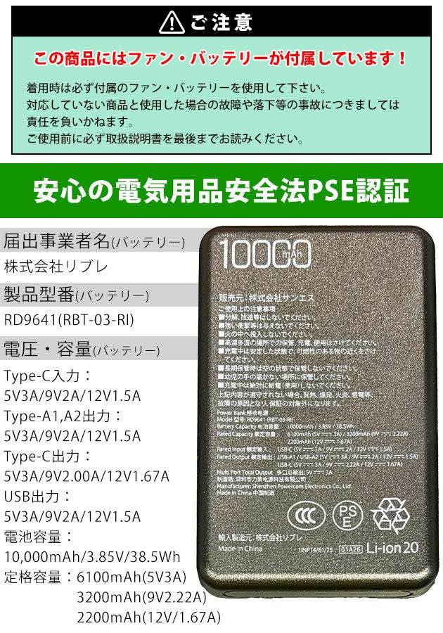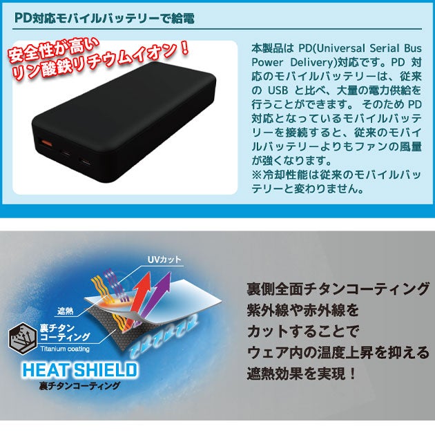 他の画像を見る 発火の危険性が低い!安全なリン酸鉄リチウムバッテリー! ビッグボーン TH9228 空調作業服 作業着 PD対応20000mAhリン酸鉄モバイルバッテリー ¥ 6,230 税込 在庫切れ お気に入りに登録する