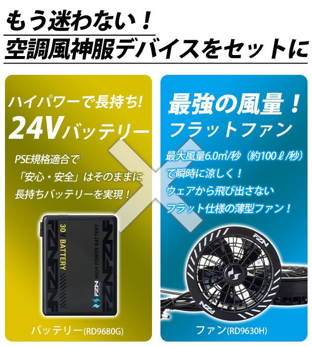 他の画像を見る 長持ちバッテリーとファンがセットに!組み合わせに悩まない! サンエス RD9690PJ・RD9610PH 空調作業服 作業着 空調風神服 24Vリチウムイオンバッテリー・ファンセット(ななめタイプ)(ジャパンラベル) ¥ 26,180 税込 在庫切れ お気に入りに登録する