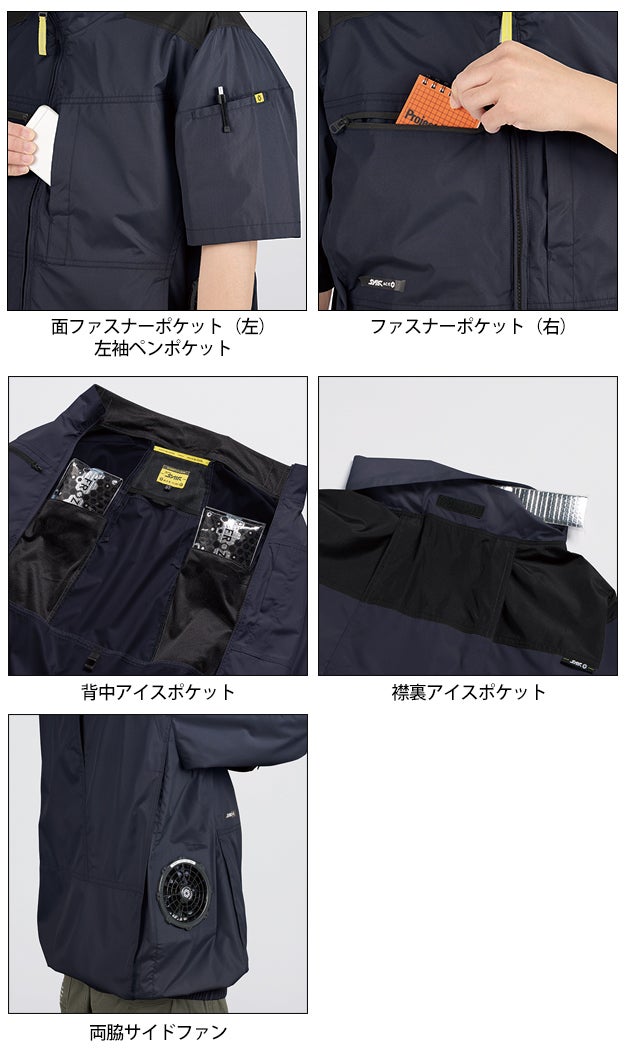 他の画像を見る ファンが背もたれに塞がれず効率よく風を届けるサイドファン仕様 アイズフロンティア 10245 空調作業服 作業着 A.S.S 半袖ワークジャケット ¥ 5,000 税込 在庫切れ お気に入りに登録する